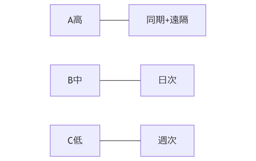| A | 顧客情報 | リアルタイム同期+オフサイト |