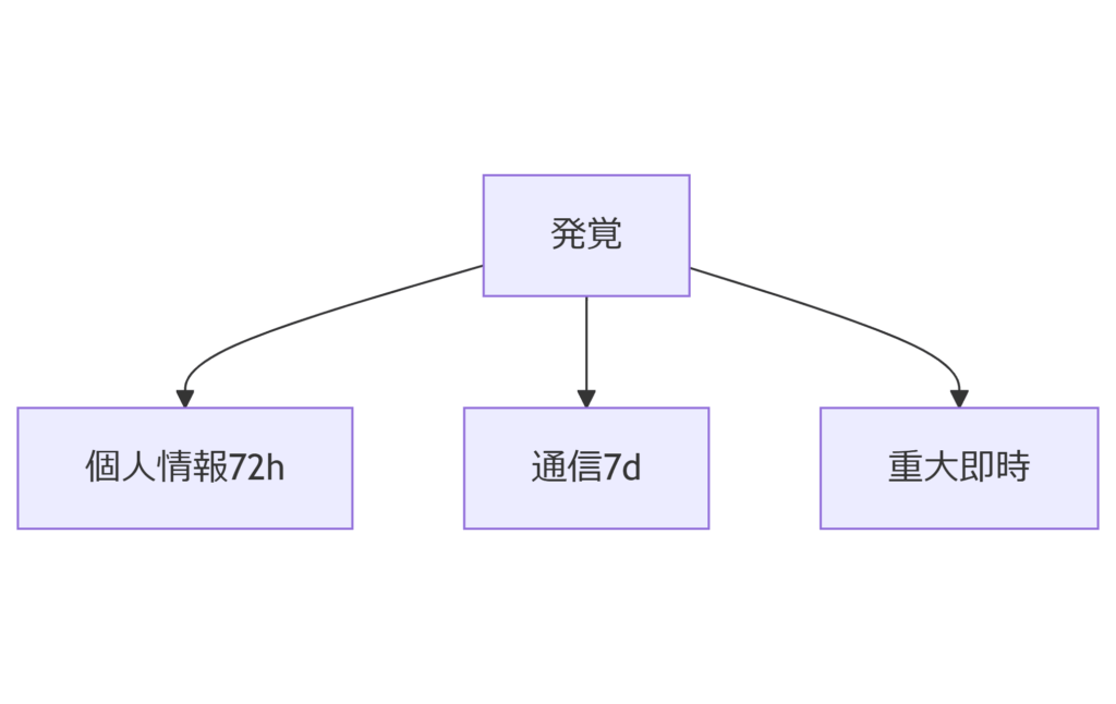 | 個人情報保護法 | 発覚から72時間 | 個人情報保護委員会 |